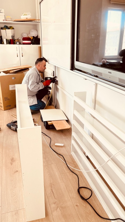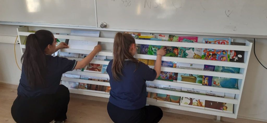 Mobilya öğretmeni, çocuk gelişimi alanı için özel olarak tasarladığı kitaplık raflarının üretim ve montajını yaptı. Ayrıca okulda bozulan kapı kollarını onararak yenileriyle değiştirdi ve eksik olan çeşitli mobilyaları üreterek okulun donanımını güçlendirdi.