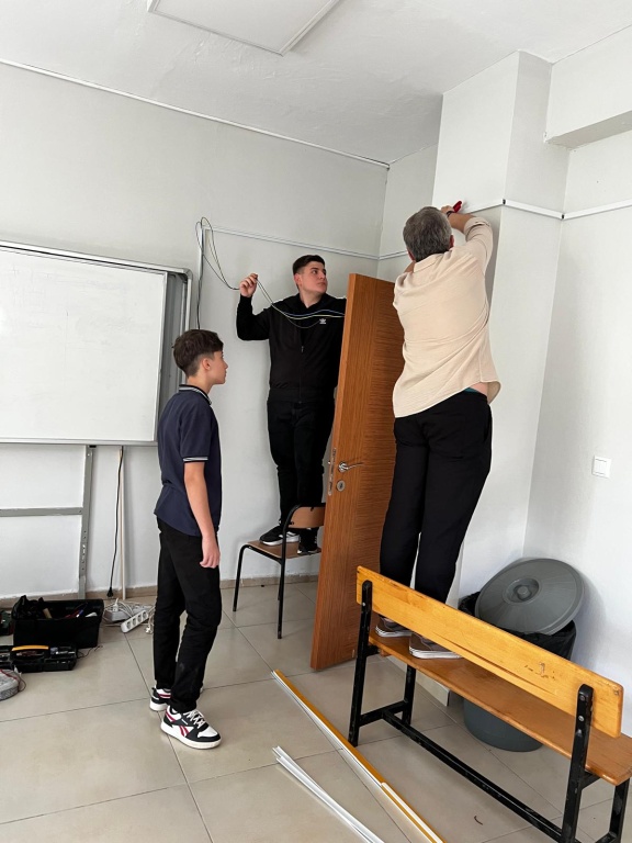 Elektrik öğretmeni, okul yönetiminin yeni idare odasına taşınması sürecinde gerekli tüm elektrik tesisatlarını düzenleyerek, aydınlatma, priz ve bağlantı sistemlerini kurdu. Ayrıca akıllı tahta montajı ve bağlantısı tamamlandı.